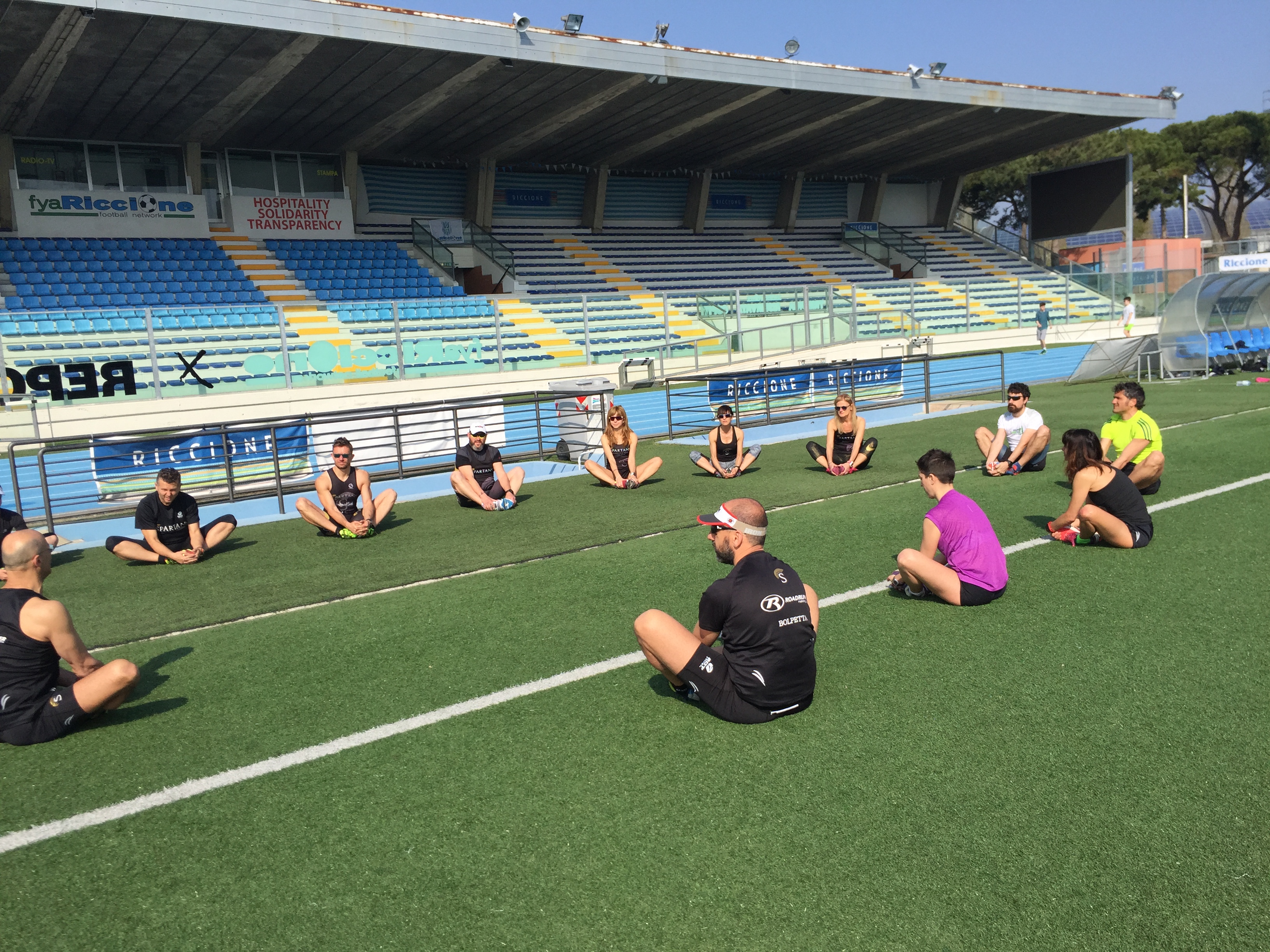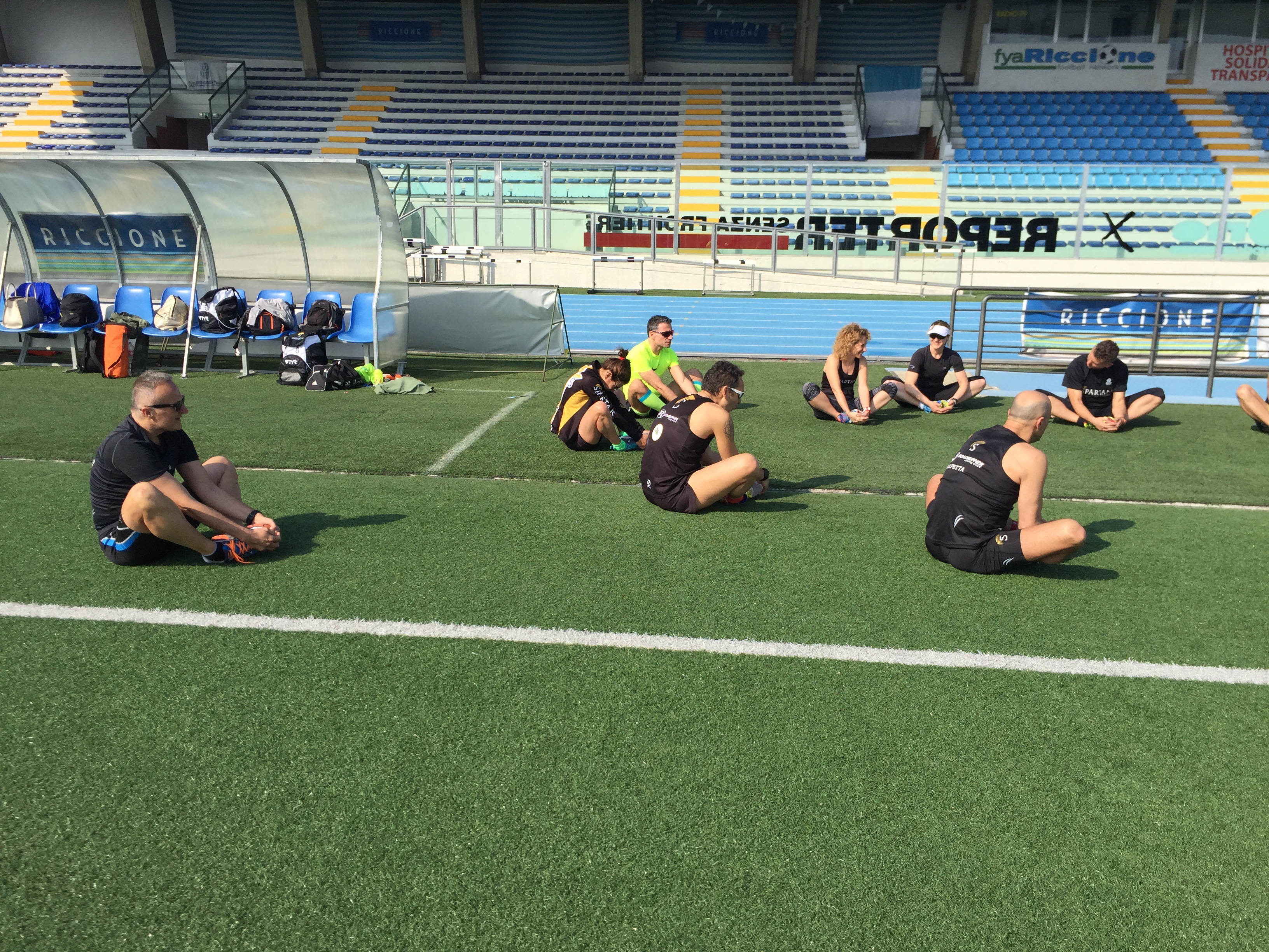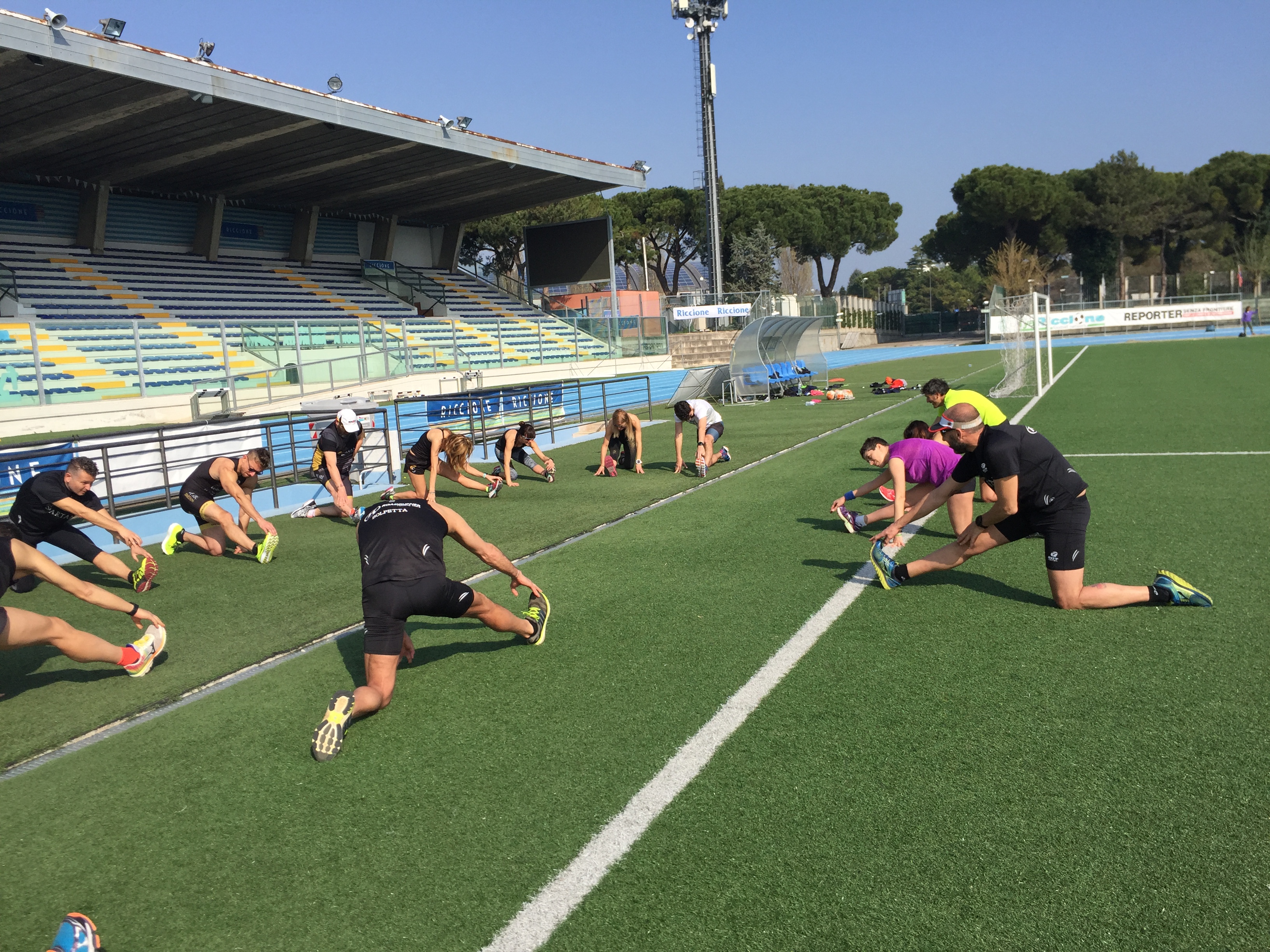 Le due giornate (e mezza, visto che in molti hanno partecipato anche alla cena del venerdi) sono iniziate sabato mattina con una seduta in pista fatta di riscaldamento, allungamento, esercizi propriocettivi e di motricità, test Conconi, e una piccola gara ad eliminazione.