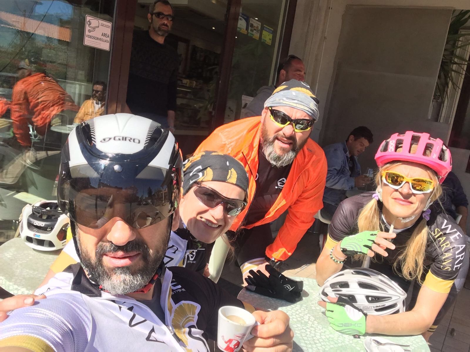Dopo il meritato pranzo la giornata prevedeva lectio magistralis di nuoto da parte del coach Luca Villa, ma la splendida giornata ha invogliato tutti per un bel giro in bici, quindi inforcate le specialissime, tutti in fila indiana verso la panoramica, la strada che attraversa il Parco di San Bartolo, fra Gabicce Mare e Pesaro, purtroppo l’ora solare non ci ha consentito di proseguire oltre la vista panoramica e mozzafiato di Castel di Mezzo.